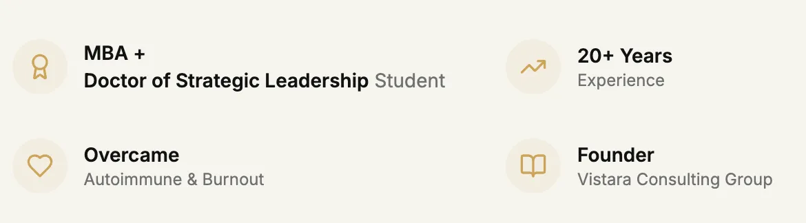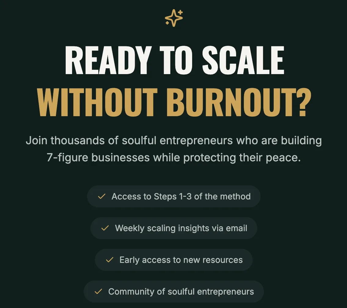 A decade-long battle with a severe autoimmune health challenge and burnout taught her that success without systems leads to collapse. This journey became the foundation of the Soulful Business Scaling Method™.
